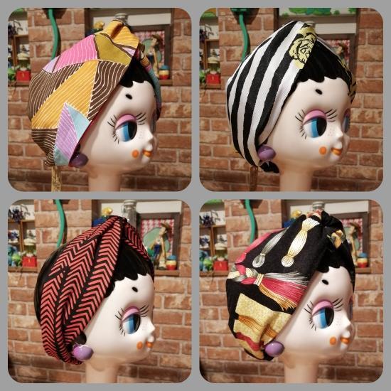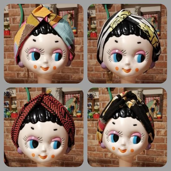 いろんなハギレを利用して作るクロスターバン(バンダナ)。